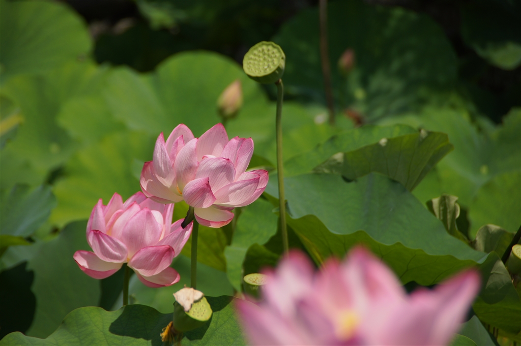 天龍寺放生池に咲く蓮…前ボケ入れて。