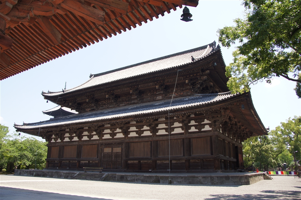 講堂より金堂を写す。