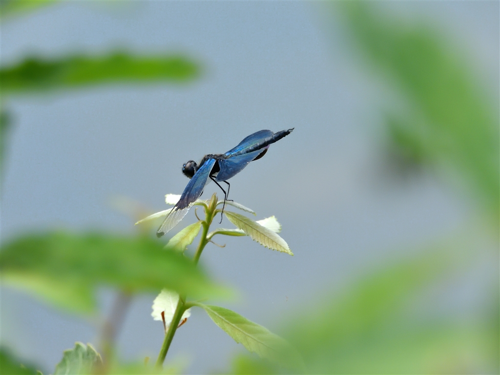 羽の色は蒼。もう少し傾いてくれると別の表情が望めるけど足下不安で・・・