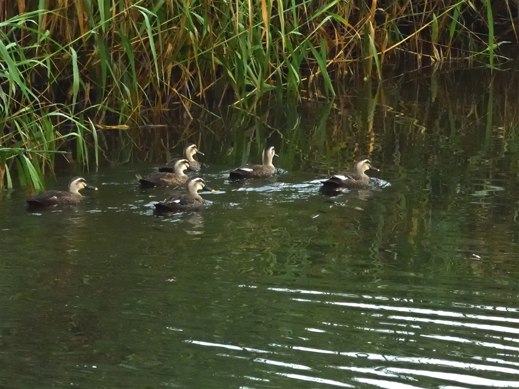 ついこの前は10羽程度の大家族だった気のするカルガモ一家です