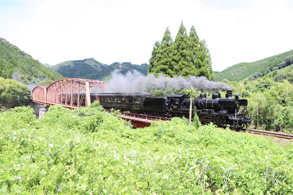 球磨川第二架橋を渡るSL人吉