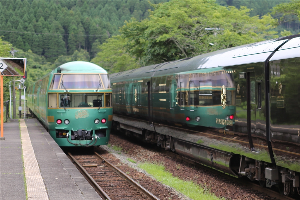 南由布院駅でのゆふいんの森3号との離合