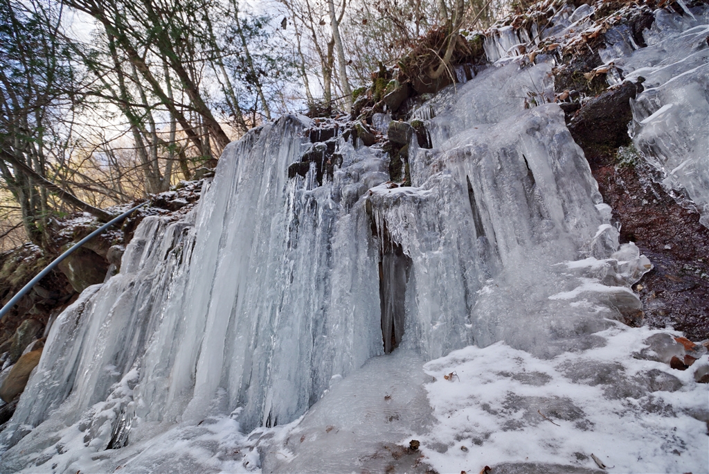 途中で仕上がった氷瀑等眺めつつ