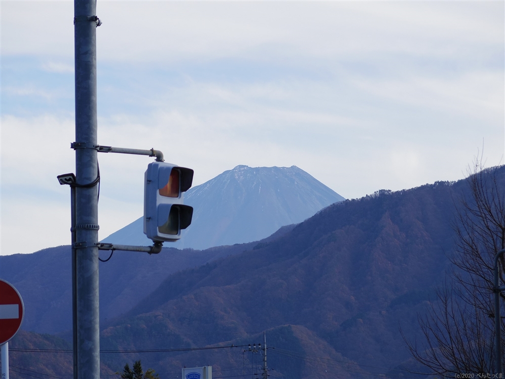 12月初旬なのに、頂上が黒い、山梨県側の富士山