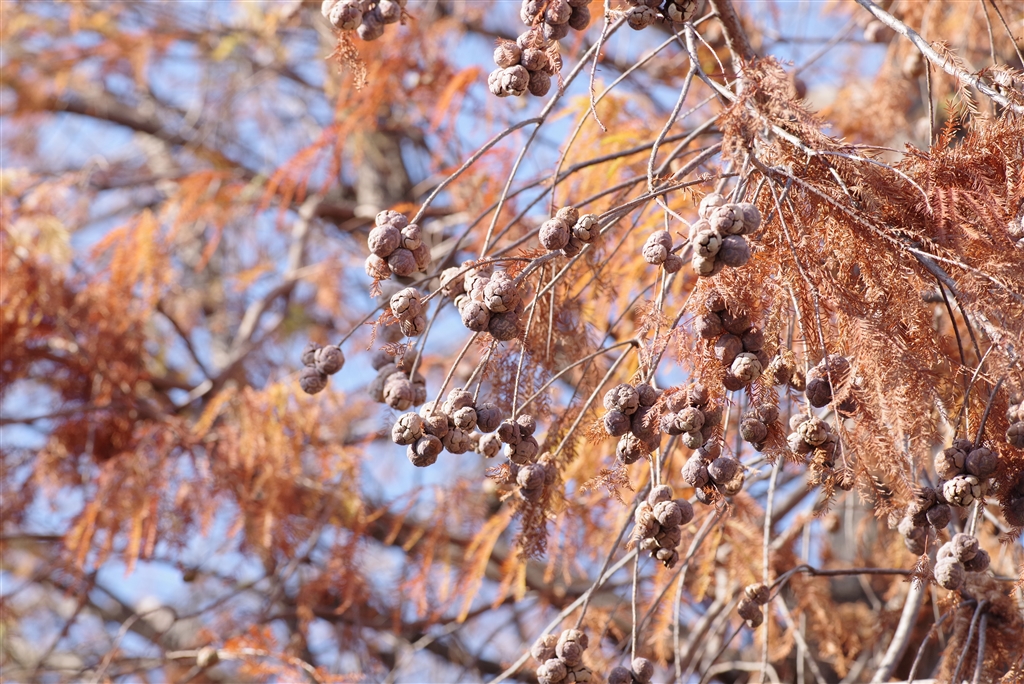 見上げると沼杉、実が成っていました