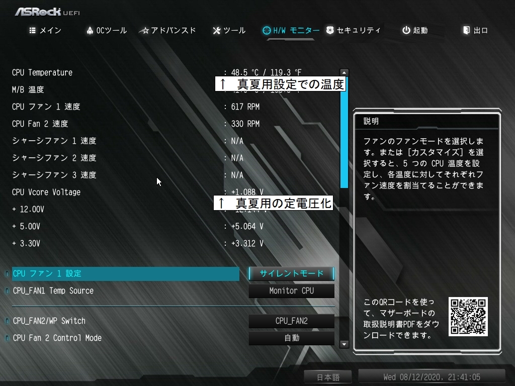 真夏用に 設定してBIOS読み