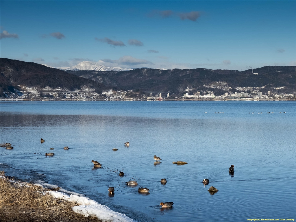 早朝の諏訪湖畔を散歩。