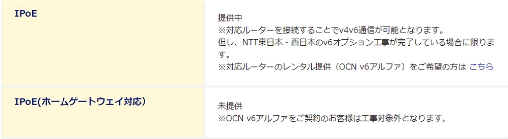 IPoEインターネット接続機能の提供状況