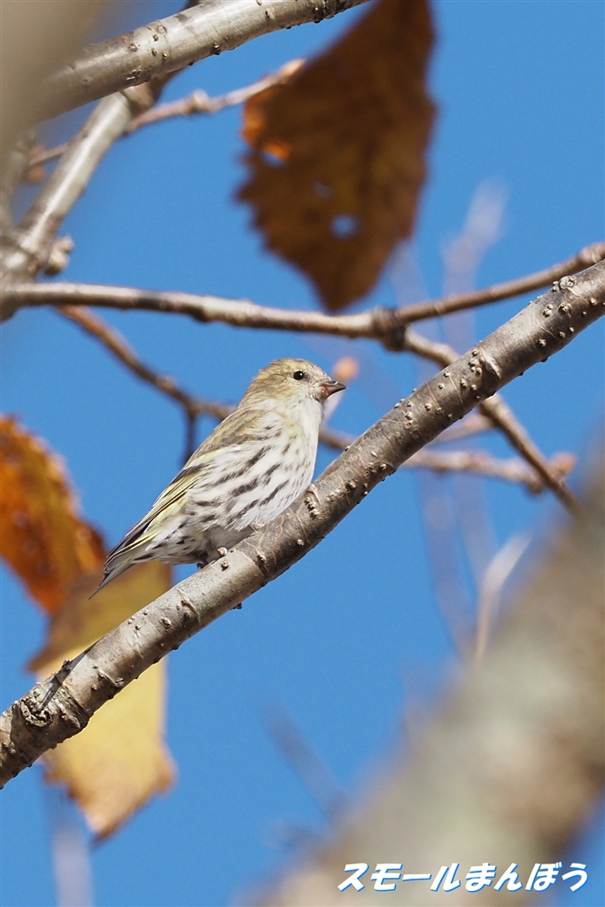 一瞬だけマヒワが枝に止まりました