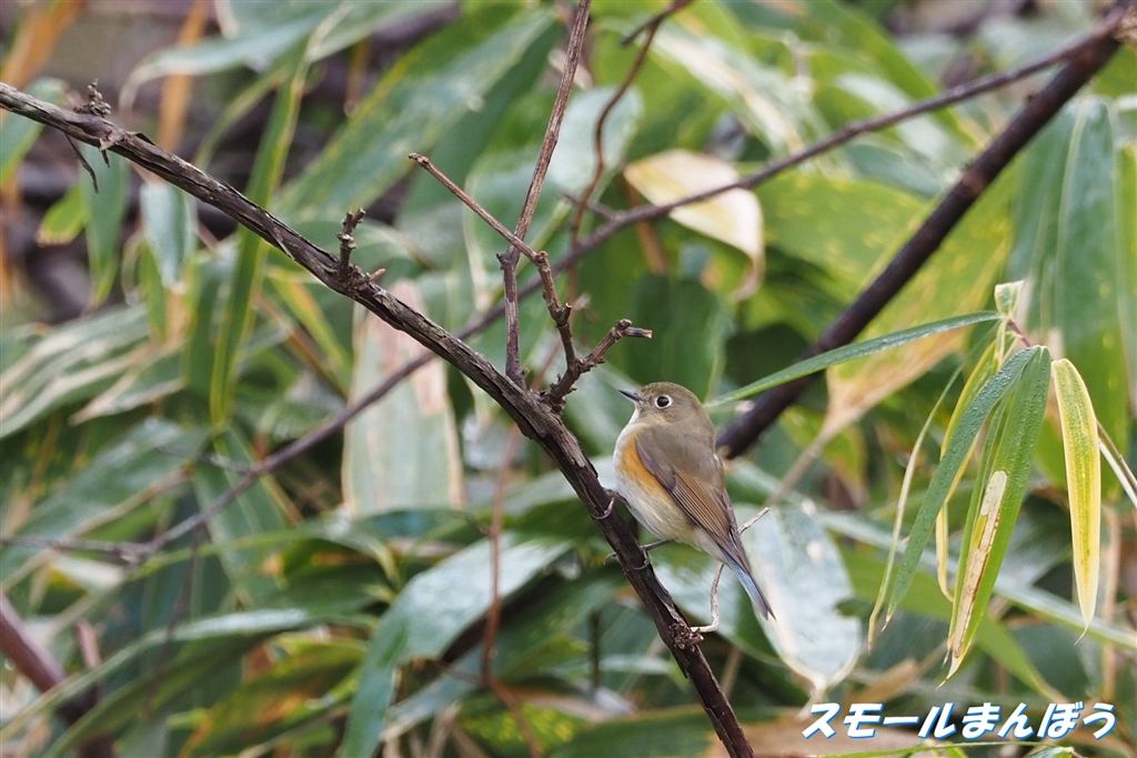 笹藪からヒョッコリ出て来たルリビタキ