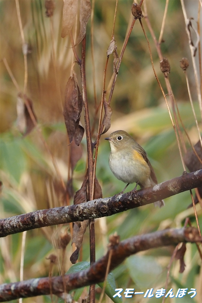 草の中からヒョッコリ出て来たルリビタキ