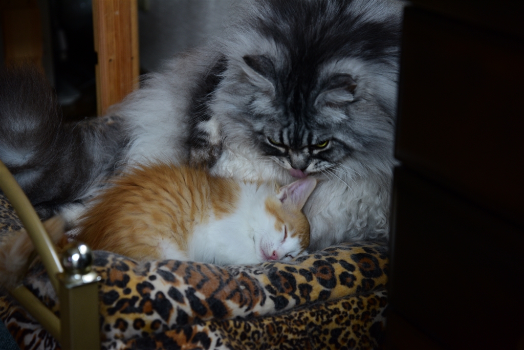 先住猫が子猫を大きく育むのかも?