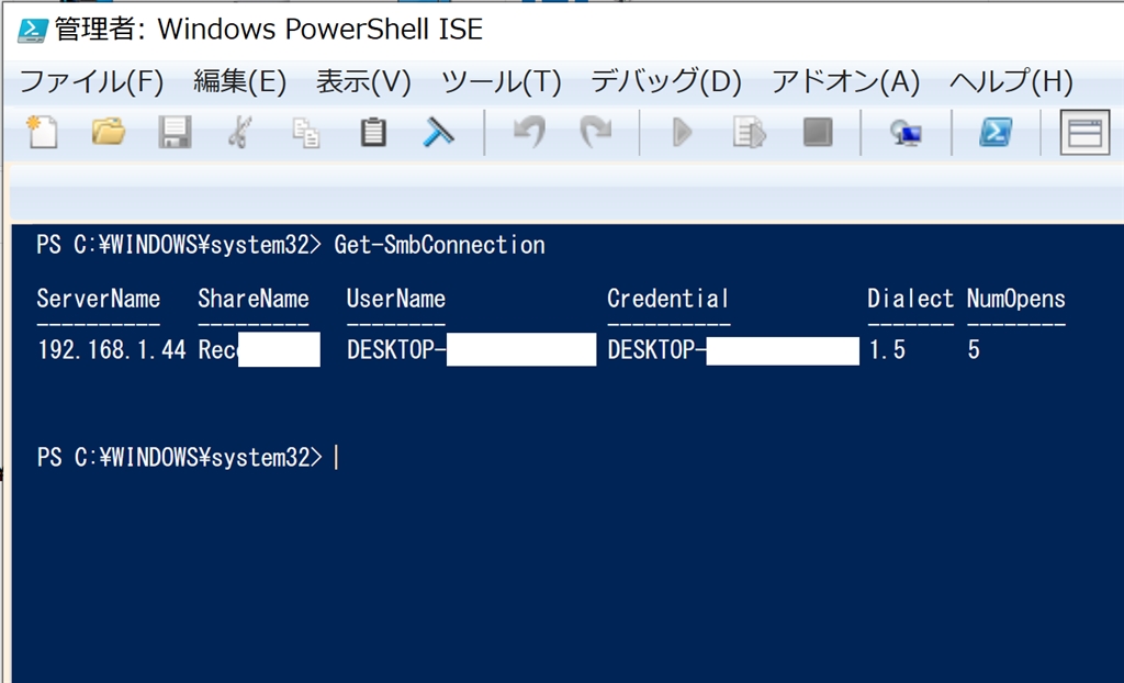 SMB2.0に対応後の表示