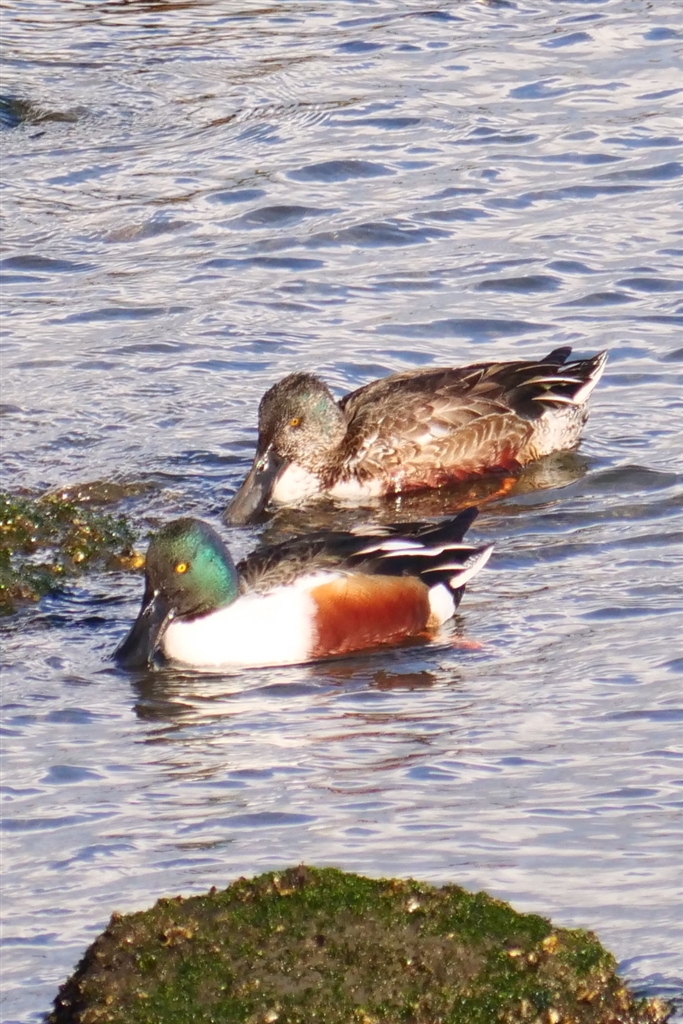 ハシロビガモ、奥側の個体、♂♀、亜種、子供?・・