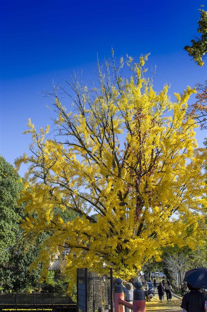 銀杏の黄色も青空に映えます。ここは宇治川沿い。