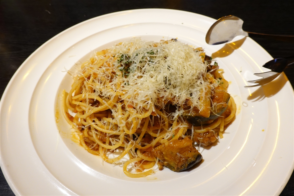 揚げナスとキノコのボロネーゼ