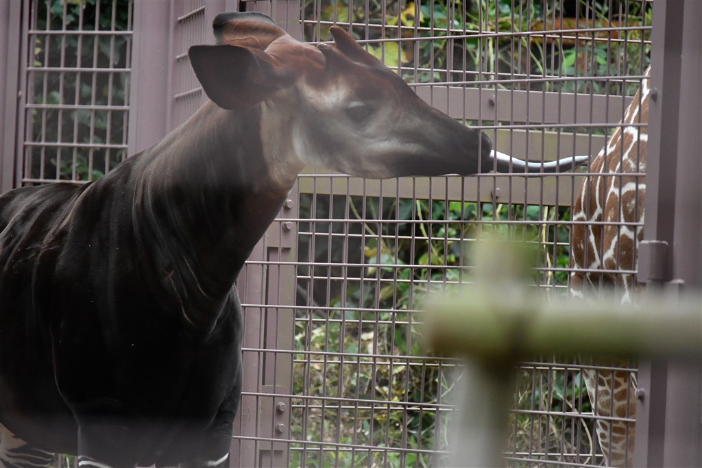 この舌で器用に草をむしって口に運んだり、キリンさんを舐めています。