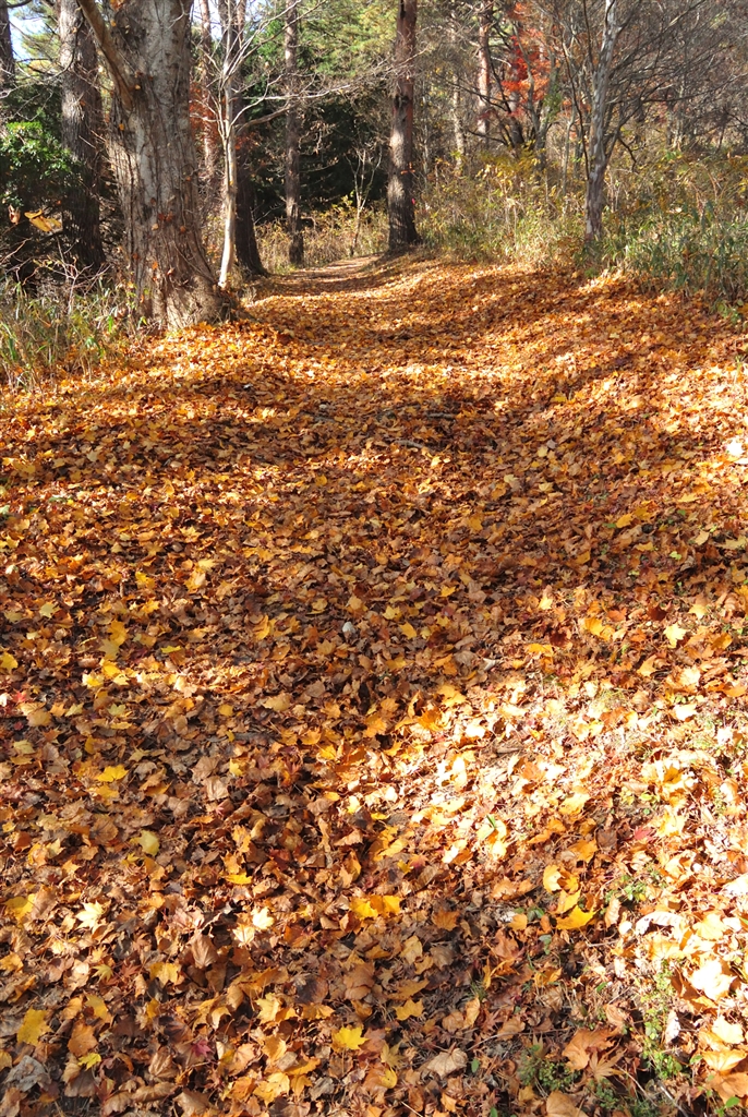 落ち葉でふかふかの登山道