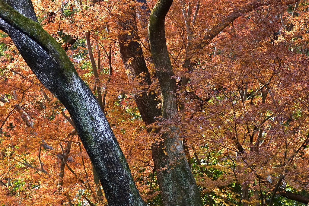 市街地に僅かに残っているモミジする木が変色し