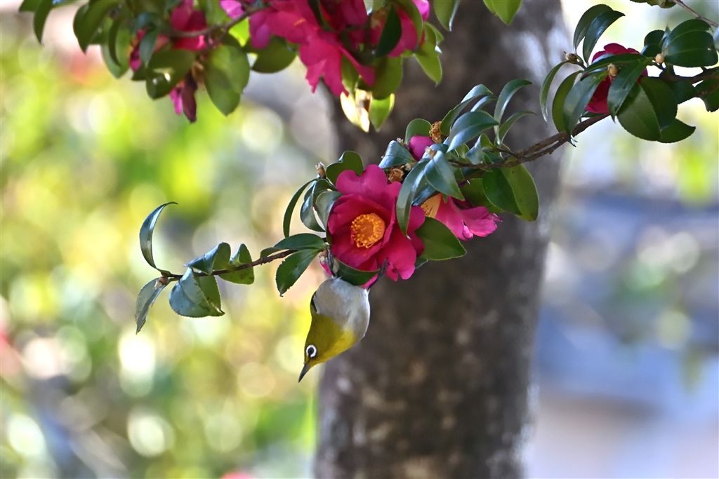 サザンカに来たメジロ−1
