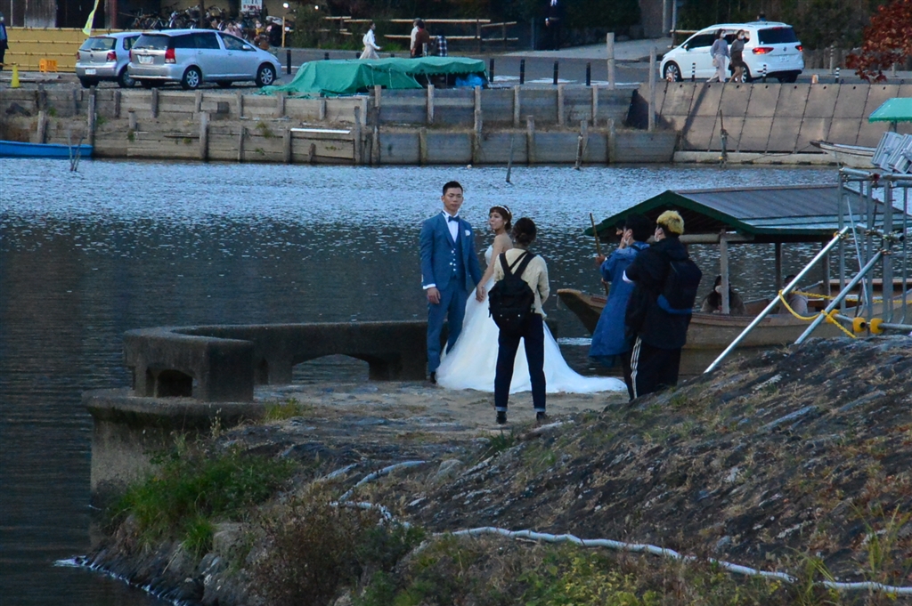 保津川で前撮りのカップル