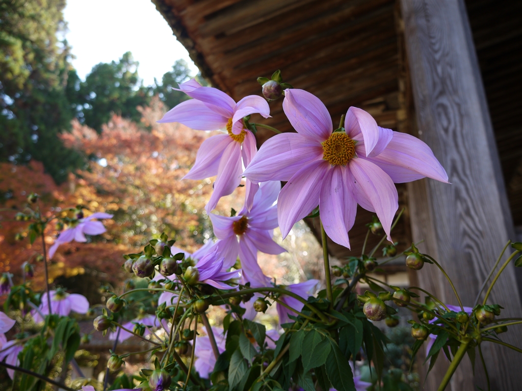 皇帝ダリアが植えていまして…日陰なので色味が微妙です。