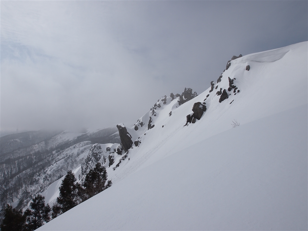 明王の禿は荒れた岩場でして、冬は岩場を除き白く染まります。