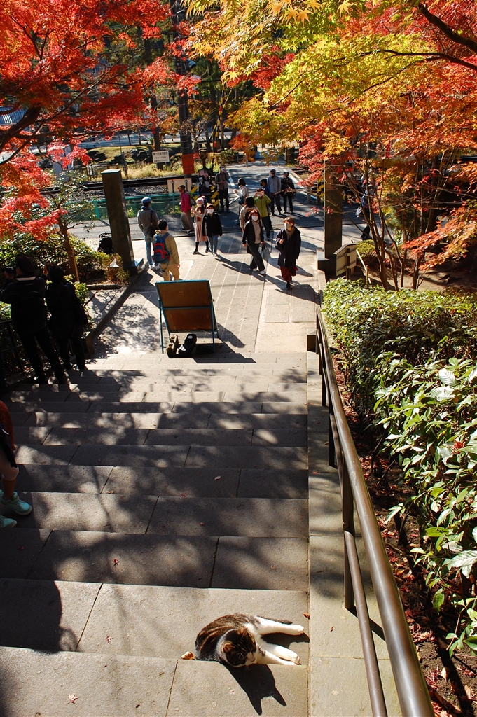 円覚寺総門前。ニャンコ越しのスカ線を画策。