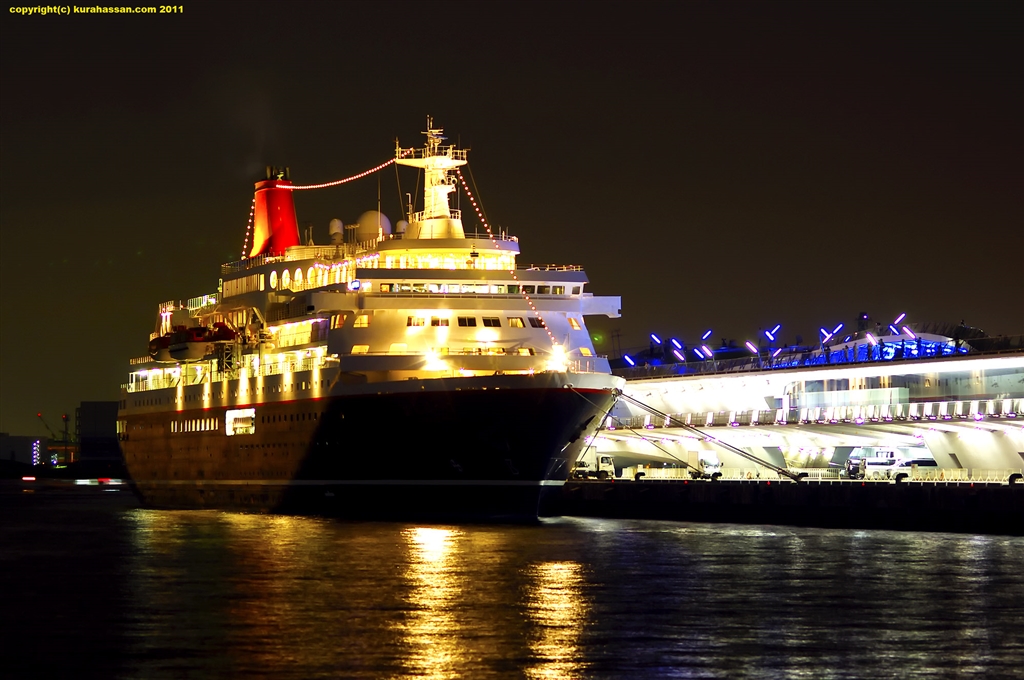 大桟橋のライトセイバーと、豪華客船。