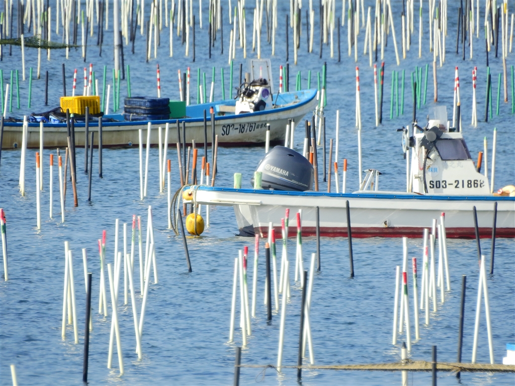 浜名湖ののり漁船(乗員は湖面に降りて海苔をバキューム中)