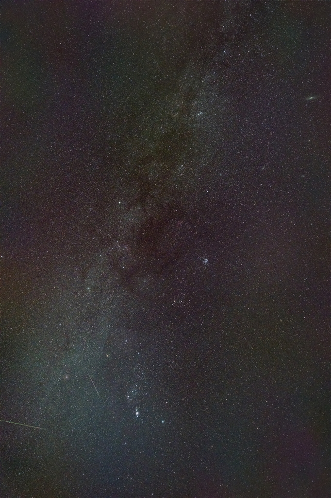 下の方、オリオン座の近くに2つの流星。
