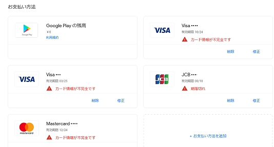 Googleアカウントのクレジットカード情報