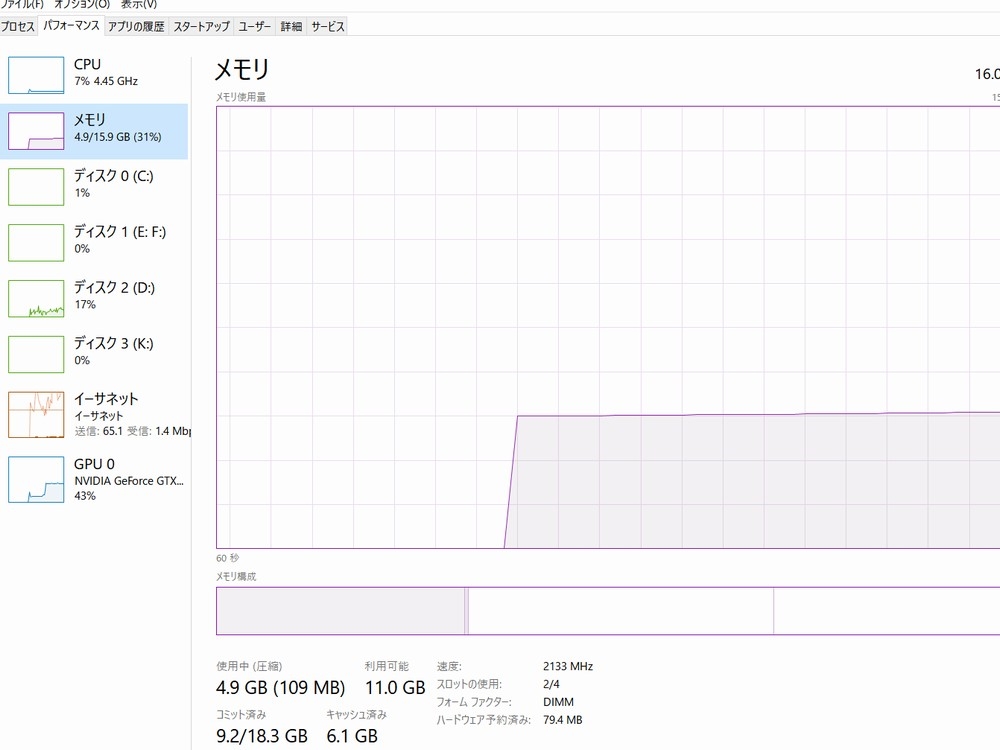 本来は3600MHzのOCメモリーを2133で使用中
