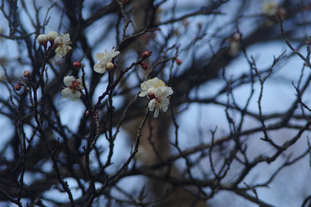 梅の花。夕暮れ。
