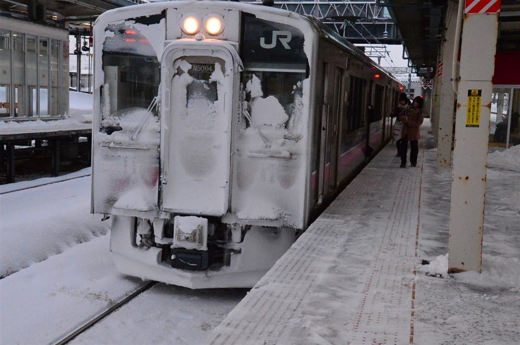 新幹線は運休なのでこの電車に乗ります。1日3本だけという超ローカルさ。