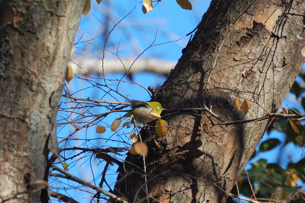 綺麗な小声で囀るメジロが山から下ってきています。