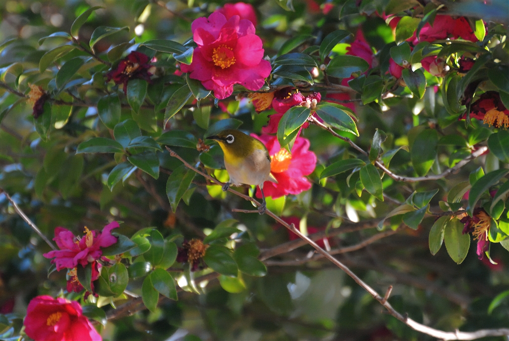 サザンカに止まるメジロ−6