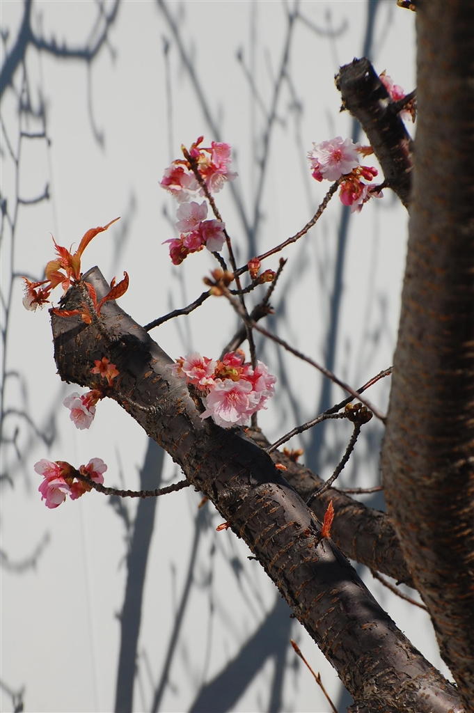 河津桜の根元で