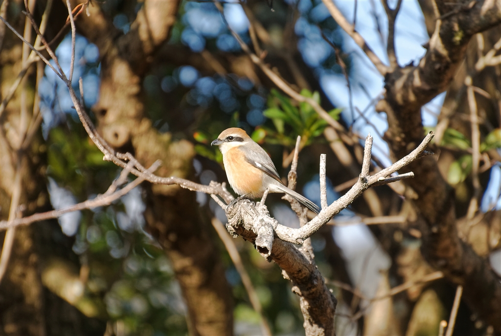 メジロを狙うモズ