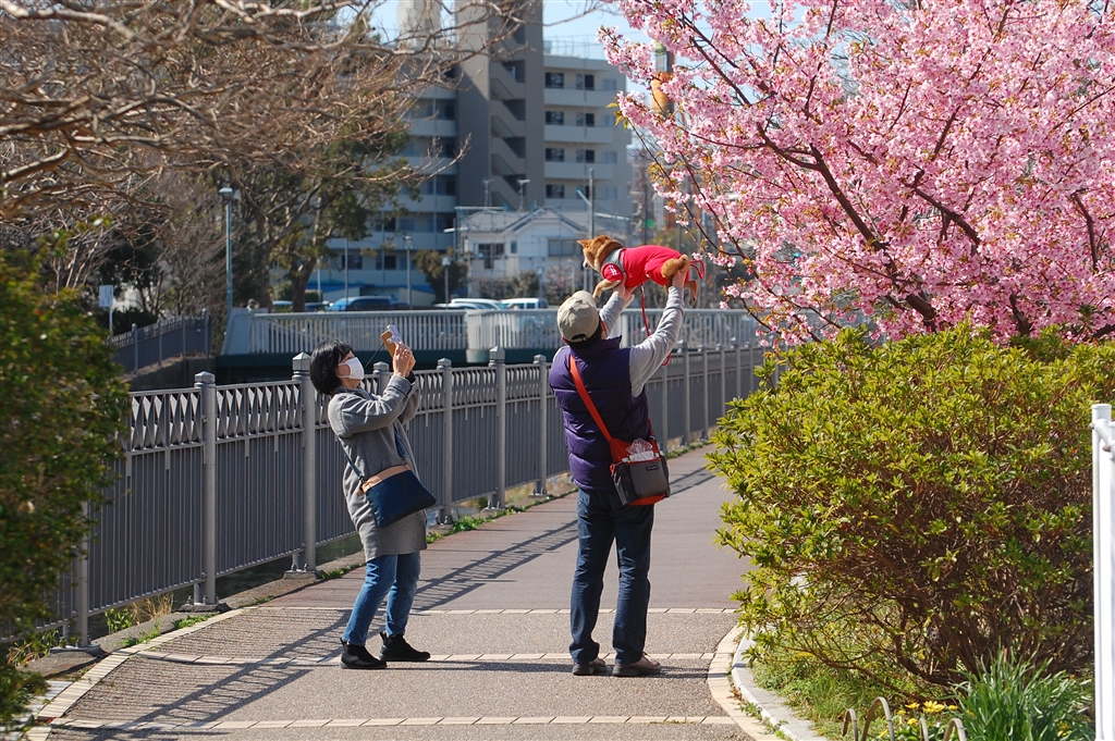 去年の河ワン津桜(川辺の遊歩道にて)