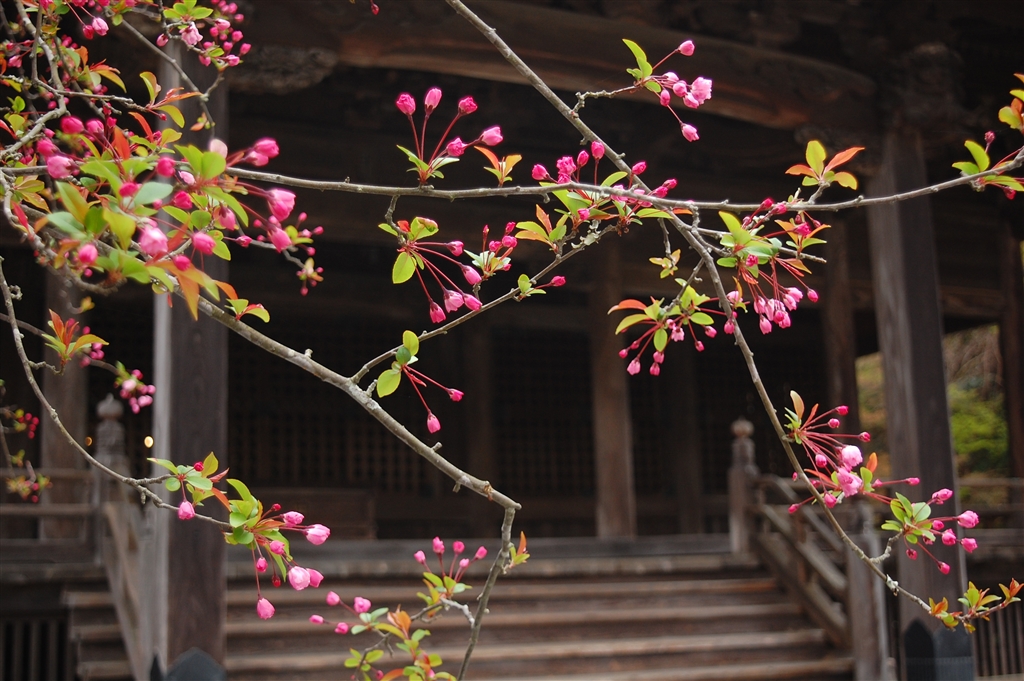 先週のパチリ。今週末が見頃かも。(妙本寺のカイドウ)
