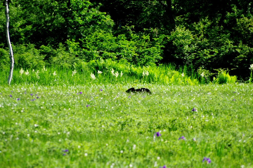 熊の散歩です。(実際は、林に逃げて行くところです。)