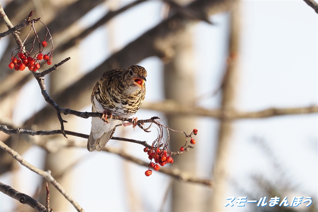 只今、実を丸呑み中のトラツグミ