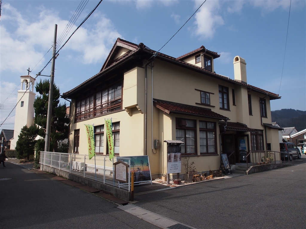 アンドリュー記念館と近江八幡教会の白い鐘楼。