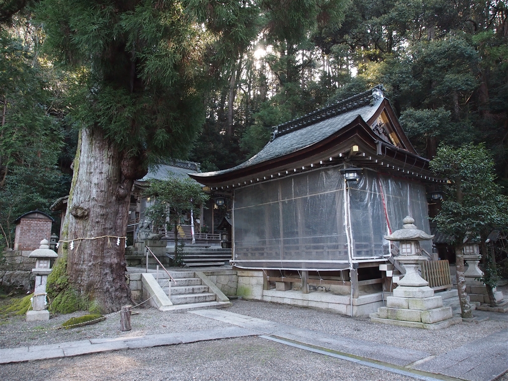拝殿と本殿と御神木。