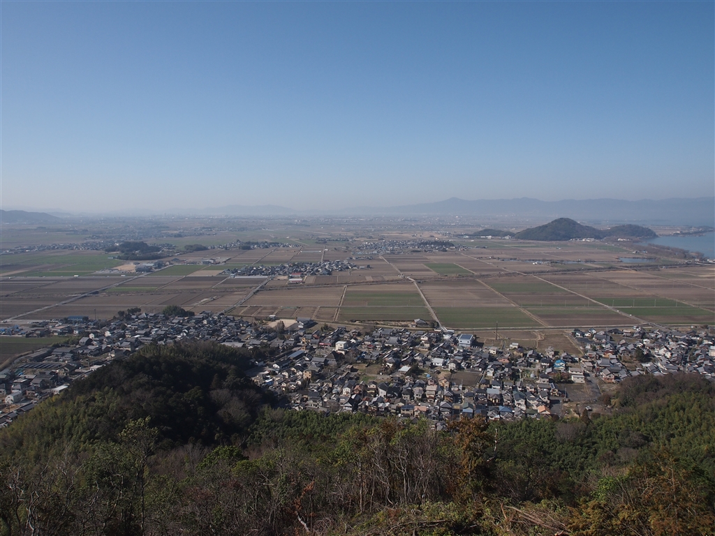出丸跡からの展望…麓の市街地の向こうには田園が広がります。