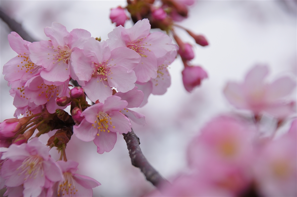 背景が曇り空なのは残念ですが前ボケ入れて。