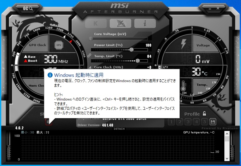 AFTERBURNER Windows起動時に適用
