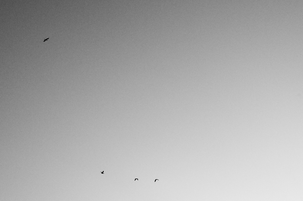 雲ひとつない朝焼けをモノクロで
