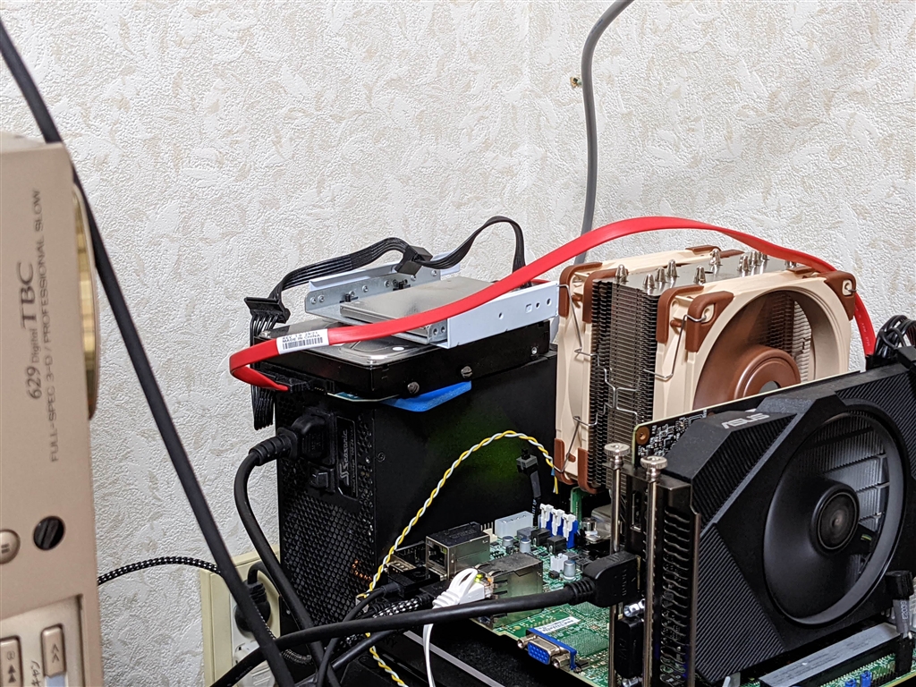 ソース動画の保存場所(電源上のHDD)、仮組立て中のPC